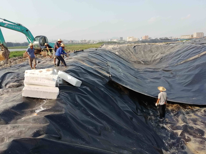 7、施工速度快—防渗膜有很高的灵活性,有多种规格多种铺设形式满足不同工程防渗要求,采用热熔焊接,焊缝强度高,施工方便、快速健康